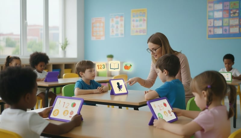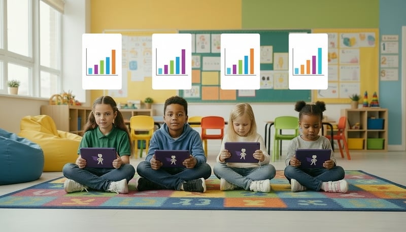 Kies een kind, pak een tablet en start de sessie. Geen voorbereiding nodig.